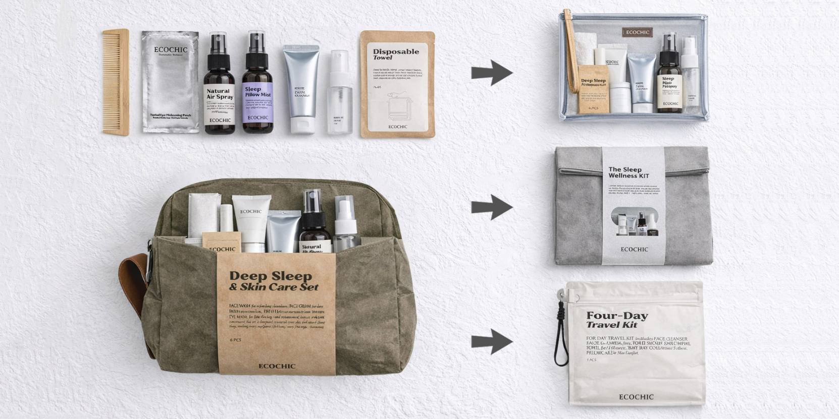 Explore our versatile travel amenity kits tailored to every business need.